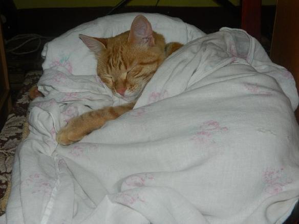 заснул наш рыжий кот и спит,