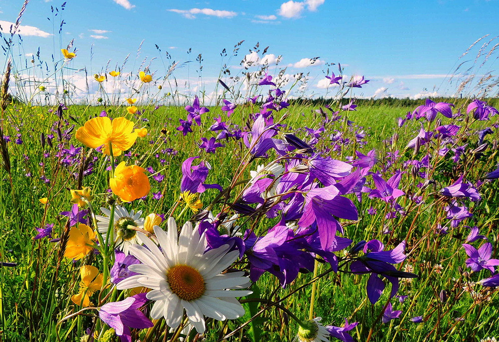 заквітчані поля.